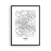 Plakat i sort ramme - Sort-hvidt kort over Rom med detaljerede gader og monumenter - 50x70cm - Romersk cirkel - Moderne vægdekoration til stue og soveværelse ARTTOR