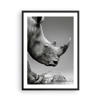 Plakat i sort ramme - Sort-hvid nærbillede af et næsehorns hoved - 50x70cm - En ustoppeli - Moderne vægdekoration til stue og soveværelse ARTTOR