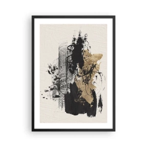 Plakat i sort ramme - Abstrakt komposition i nuancer af sort og guld - 50x70cm - Komposition med lidenskab - Moderne vægdekoration til stue og soveværelse ARTTOR