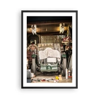Plakat i sort ramme - En veteranbil i en garage omgivet af værktøj - 50x70cm - Tilbage til fortiden - Moderne vægdekoration til stue og soveværelse ARTTOR