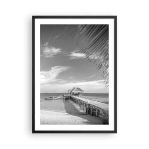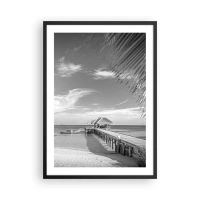 Plakat i sort ramme - Sort-hvidt landskab med en mole over et roligt hav - 50x70cm - Et minde eller en drøm? - Moderne vægdekoration til stue og soveværelse ARTTOR