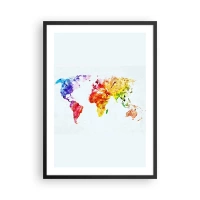 Plakat i sort ramme - Farverigt akvarel verdenskort - 50x70cm - Alle verdens farver - Moderne vægdekoration til stue og soveværelse ARTTOR