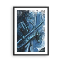 Plakat i sort ramme - Kunstnerisk skitse af en musiker, der spiller saxofon - 50x70cm - Byens rapsodi - Moderne vægdekoration til stue og soveværelse ARTTOR