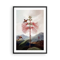 Plakat i sort ramme - Eksotisk blomst med kolibrier blandt bjergene - 50x70cm - I et tropisk paradis - Moderne vægdekoration til stue og soveværelse ARTTOR