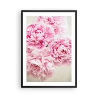 Plakat i sort ramme - En buket lyserøde pæoner på en lys baggrund - 50x70cm - I lyserød glamour - Moderne vægdekoration til stue og soveværelse ARTTOR