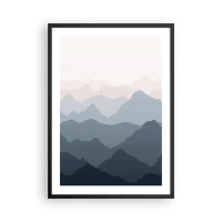 Plakat i sort ramme - Lagdelte bjergkæder i nuancer af blå og grå - 50x70cm - Bølger af bjerge - Moderne vægdekoration til stue og soveværelse ARTTOR