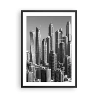 Plakat i sort ramme - Panorama over byen med moderne skyskrabere - 50x70cm - Byen over ørkenen - Moderne vægdekoration til stue og soveværelse ARTTOR