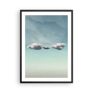 Plakat i sort ramme - En hængekøje ophængt mellem to skyer mod himlen - 50x70cm - Lykken i øjeblikket - Moderne vægdekoration til stue og soveværelse ARTTOR