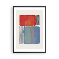 Plakat i sort ramme - Abstrakt komposition med røde og blå rektangler - 50x70cm - Geometriens ånd og bogstav - Moderne vægdekoration til stue og soveværelse ARTTOR