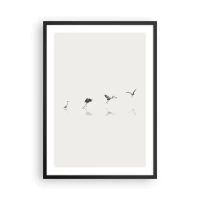 Plakat i sort ramme - En minimalistisk komposition af fugle ved vandet - 50x70cm - Fire enkle trin - Moderne vægdekoration til stue og soveværelse ARTTOR