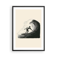 Plakat i sort ramme - Retro surfer på bølge grafik, sort og cremefarvet komposition - 50x70cm - Bølgens konge - Moderne vægdekoration til stue og soveværelse ARTTOR