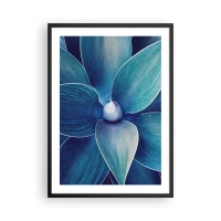 Plakat i sort ramme - Detalje af en stor blomst i blå nuancer - 50x70cm - Blå fra himlen - Moderne vægdekoration til stue og soveværelse ARTTOR