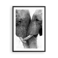 Plakat i sort ramme - Nærbillede af to elefanter i sort-hvid - 50x70cm - Hjertelig tilståelse - Moderne vægdekoration til stue og soveværelse ARTTOR