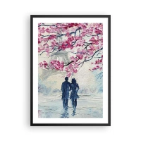 Plakat i sort ramme - Et par under blomstrende grene i et romantisk landskab - 50x70cm - Romantisk gåtur - Moderne vægdekoration til stue og soveværelse ARTTOR
