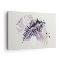 Lærredstryk - Billede på lærred - Tropiske blade i nuancer af lyserød og blå - 70x50cm - Troperne i lyserød og blå - Moderne vægdekoration til stue og soveværelse ARTTOR