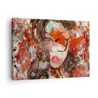 Lærredstryk - Billede på lærred - Abstrakt portræt af en kvinde i intense farver - 70x50cm - Ingen ved, hvordan du virkelig er - Moderne vægdekoration til stue og soveværelse ARTTOR