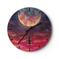 Vægur, Uret - En pige på en gynge hængende under månen - 30x30cm - Glæd dig i skyerne - Moderne vægdekoration til stue, køkken og soveværelse ARTTOR