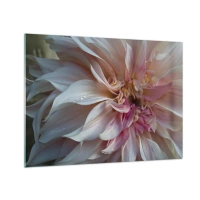 Billede på glas - Nærbillede af en lyserød og cremefarvet blomst med vanddråber - 70x50cm - Blomstrende friskhed - Moderne vægdekoration til stue og soveværelse ARTTOR
