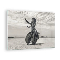 Billede på glas - Sort-hvidt fotografi af en danser i ørkenen - 70x50cm - Dans på de sydlige øer - Moderne vægdekoration til stue og soveværelse ARTTOR