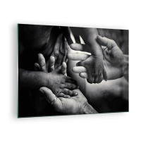 Billede på glas - Symbolsk sort-hvidt håndtryk fra forskellige generationer - 70x50cm - At være menneske - Moderne vægdekoration til stue og soveværelse ARTTOR