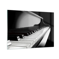 Billede på glas - Sort og hvidt klaverklaver i perspektiv - 70x50cm - Harmoni af former og farver - Moderne vægdekoration til stue og soveværelse ARTTOR