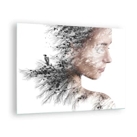 Billede på glas - Portræt af en kvinde med grene i baggrunden - 70x50cm - Skovens ånd - Moderne vægdekoration til stue og soveværelse ARTTOR