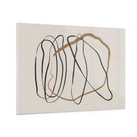 Billede på glas - En udtryksfuld komposition af linjer i sort og brunt på en lys baggrund. - 70x50cm - Komposition - dans i besiddelse - Moderne vægdekoration til stue og soveværelse ARTTOR