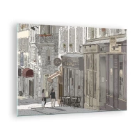Billede på glas - En gade med caféer i kunstnerisk urban stil - 70x50cm - Byens glæder - Moderne vægdekoration til stue og soveværelse ARTTOR