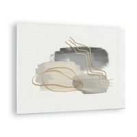 Billede på glas - Abstraktion med grå pletter og guldlinjer på en lys baggrund - 70x50cm - Vedholdenhed og bevægelse - Moderne vægdekoration til stue og soveværelse ARTTOR
