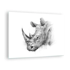 Billede på glas - Sort-hvidt portræt af et næsehorn i en kunstnerisk tilgang - 70x50cm - Afrikansk portræt - Moderne vægdekoration til stue og soveværelse ARTTOR