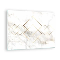 Billede på glas - Geometriske gyldne romber på en hvid marmorbaggrund - 70x50cm - Udsigt til det uendelige - Moderne vægdekoration til stue og soveværelse ARTTOR