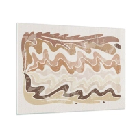 Billede på glas - Beige og brune bølger i en abstrakt komposition - 70x50cm - God energi - gode følelser - Moderne vægdekoration til stue og soveværelse ARTTOR