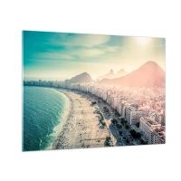 Billede på glas - Panorama af stranden med bybygninger og en bjergbaggrund - 70x50cm - Evig ferie i Rio - Moderne vægdekoration til stue og soveværelse ARTTOR