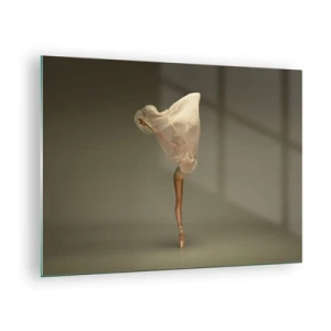 Billede på glas - En danser i en delikat positur med løftet slør - 70x50cm - Den er ved at flyve - Moderne vægdekoration til stue og soveværelse ARTTOR