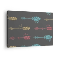 Lærredstryk - Billede på lærred - Stiliseret pilmønster i pastelfarver på en mørk baggrund - 70x50cm - For at - Moderne vægdekoration til stue og soveværelse ARTTOR