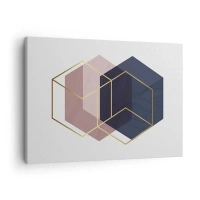 Lærredstryk - Billede på lærred - Geometriske former i gyldne linjer på en pastelfarvet baggrund - 70x50cm - Styrken ved enkelhed - Moderne vægdekoration til stue og soveværelse ARTTOR