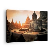 Lærredstryk - Billede på lærred - Buddha-statue ved Borobudur-templet ved solnedgang - 70x50cm - Vejr med stor visdom - Moderne vægdekoration til stue og soveværelse ARTTOR