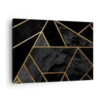 Lærredstryk - Billede på lærred - Geometrisk guldmønster på sort baggrund - 70x50cm - Mørke og lys - Moderne vægdekoration til stue og soveværelse ARTTOR