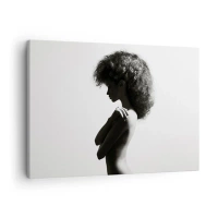 Lærredstryk - Billede på lærred - En diskret silhuet af en kvinde i sorte og hvide nuancer på en lys baggrund - 70x50cm - Som en blomst på en slank stilk - Moderne vægdekoration til stue og soveværelse ARTTOR