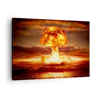 Lærredstryk - Billede på lærred - Eksplosion af paddehatteskyer mod en solnedgangs baggrund - 70x50cm - Og enden vil komme - Moderne vægdekoration til stue og soveværelse ARTTOR