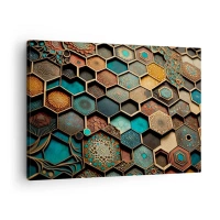 Lærredstryk - Billede på lærred - Farverige ornamenter i sekskantede mønstre - 70x50cm - Arabiske ornamenter - en variation - Moderne vægdekoration til stue og soveværelse ARTTOR