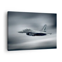 Lærredstryk - Billede på lærred - Et jagerfly i luften mod en overskyet himmel - 70x50cm - Vil du tage udfordringen op? - Moderne vægdekoration til stue og soveværelse ARTTOR