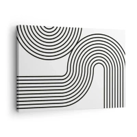 Lærredstryk - Billede på lærred - Et abstrakt maleri med sorte linjer, der skaber geometriske mønstre på en hvid baggrund. - 70x50cm - På en kurve - Moderne vægdekoration til stue og soveværelse ARTTOR