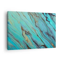 Lærredstryk - Billede på lærred - Abstrakte bølger i nuancer af turkis og guld - 70x50cm - Turkis tidevand - Moderne vægdekoration til stue og soveværelse ARTTOR