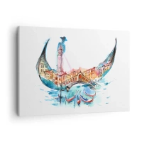 Lærredstryk - Billede på lærred - En akvarelkomposition af Venedig i form af en gondol - 70x50cm - Vi sejler gennem byen - Moderne vægdekoration til stue og soveværelse ARTTOR