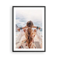 Plakat i sort ramme - Kvinde i boho-kjole med udsigt over havet - 50x70cm - På vej mod lykken - Moderne vægdekoration til stue og soveværelse ARTTOR