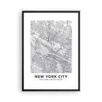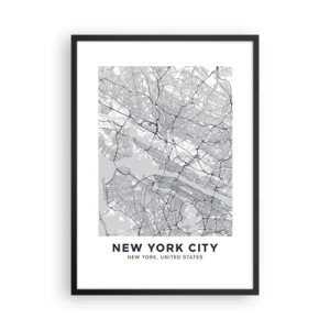 Plakat i sort ramme - Et minimalistisk kort over New York City - 50x70cm - Anatomi af en storby - Moderne vægdekoration til stue og soveværelse ARTTOR