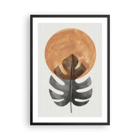 Plakat i sort ramme - Et monsterablad mod en varm orange cirkel - 50x70cm - Altid solen - Moderne vægdekoration til stue og soveværelse ARTTOR