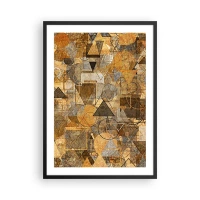 Plakat i sort ramme - Gylden abstrakt geometrisk komposition - 50x70cm - Verden i form - Moderne vægdekoration til stue og soveværelse ARTTOR