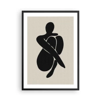Plakat i sort ramme - Abstrakt figur i en positur med arme viklet om kroppen, sort-hvid illustration - 50x70cm - I din egen favn - Moderne vægdekoration til stue og soveværelse ARTTOR